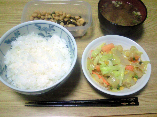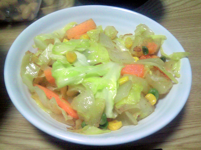 晩飯は、野菜炒めを作りました。