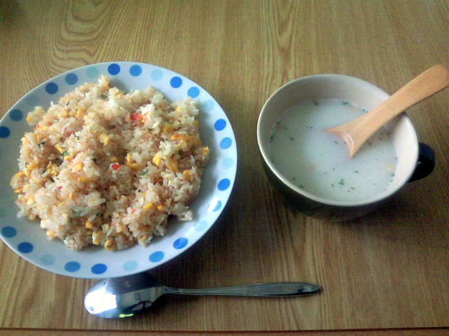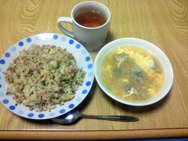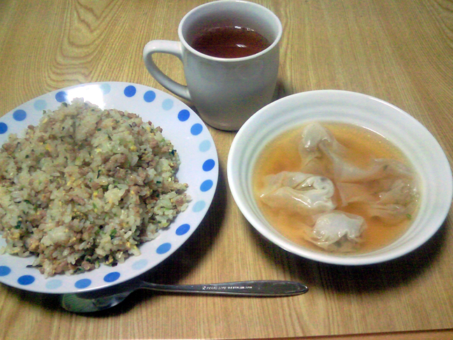 ワンタンスープと炒飯が晩飯でした。