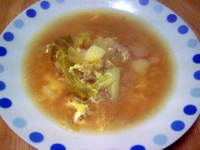 最後に火を止めて、溶き卵を投入して出来上がりです。