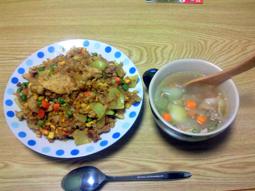 コンソメスープとドライカレー。